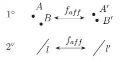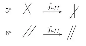 Из определения аффинных преобразований видно, что они сохраняют прямые и свойство различия двух точек: