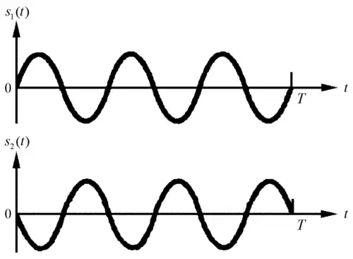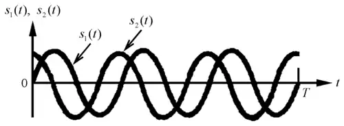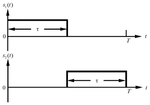 При передаче двух различных сигналов, и , положение несколько иное. Здесь речь идёт уже не об обнаружении, а о различении двух сигналов. Дело сводится к ответу на вопрос: имеется ли на входе приёмника сигнал плюс шум, или сигнал плюс шум? Ответ на этот вопрос определяется уже не свойствами каждого сигнала в отдельности, эти свойства в принципе могли бы оставаться неизвестными, а физическим различием между сигналами. Сигналы могут различаться между собою значениями тех или иных параметров. При выборе двух сигналов нужно стремиться к тому, чтобы различие между ними было по возможности более стойким по отношению к действию помехи. Это значит, прежде всего, что различие должно быть по возможности велико, с тем, что если оно уменьшится в процессе передачи под действием помехи, то оставшееся различие должно быть все же достаточно для уверенного различения сигналов. Но, кроме того, нужно выбирать различие по тому параметру (из всех параметров данного сигнала), который в наименьшей степени подвержен влиянию помехи данного типа.