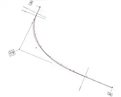 Тормозная кривая состоит из 2 различных клотоид (первая целая и вторая обрезанная в начальном участке) с общим стыковым радиусом в точке сочленения между ними.