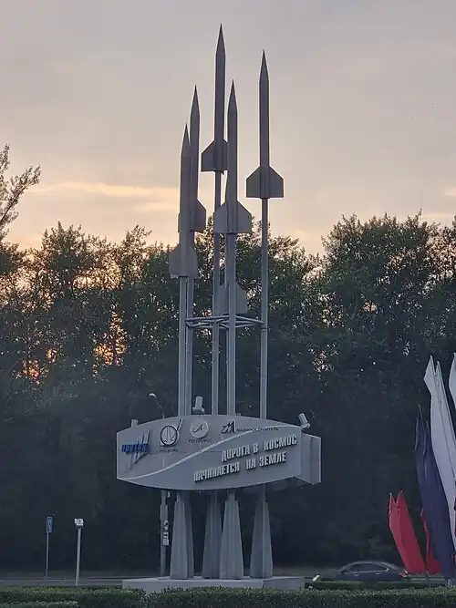 На шоссе Космонавтов, которое было названо так после того, как в результате вынужденной посадки тут приземлился Алексей Леонов и по этому шоссе ехал в город, расположен монумент, посвященный покорителям космоса.