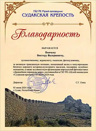 Благодарности Виктора Пинчука, полученные за вклад в культуру, искусство и науку