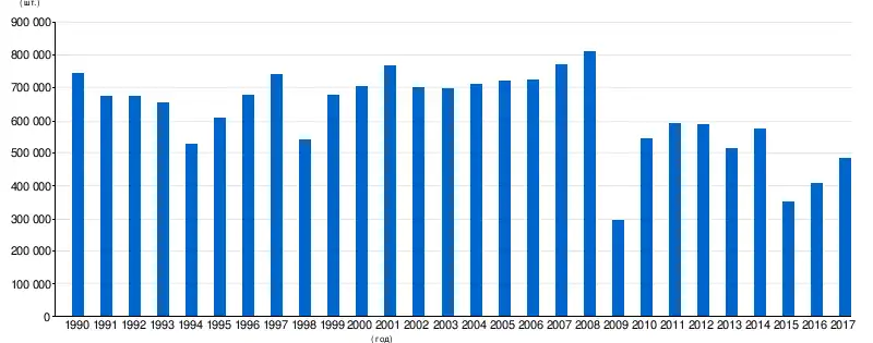 К 1990 году 25 % продукции автозавода уходила на экспорт, бо́льшая часть которого приходилась на страны Западной Европы[74]. По утверждению журнала За рулём, на 1991 год только дилер из ФРГ «Дойче Лада» хотел заказать 100 тысяч машин у АвтоВАЗа, но это количество директивно было снижено руководством завода до 40 тысяч автомобилей[76].