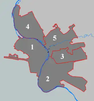 Город Омск разделён на 5 административных округов (городских административных районов) как внутригородские территории (административно-территориальные единицы)[1][2][3].