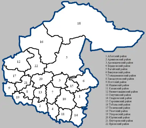| 20 | Ярковский район | ![]() | ![]() | 6 656,8 | ↗23 295[7] | село Ярково |