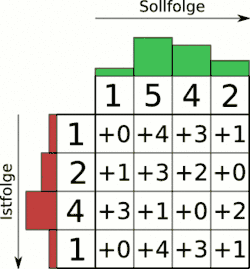 • Непрерывность (условие на длину шага): любые два смежных элемента пути , и , удовлетворяют следующим неравенствам: , . Это ограничение гарантирует, что путь трансформации передвигается на один шаг за один раз. То есть оба индекса и могут увеличиться только на 1 на каждом шаге пути.