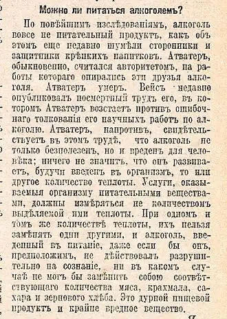 «Научные новости. Можно ли питаться алкоголем?» 1910