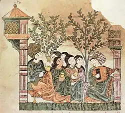 Иллюстрация магрибского манускрипта «История о Баяде и Рияде», 13 век.