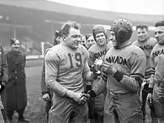 - Канадская игра ведётся на прямоугольном поле 150 ярдов (135 метров) длиной и 65 ярдов (60 метров) шириной. У каждого конца поля, на расстоянии 110 ярдов друг от друга проведены линии цели, и 20-ярдовая очковая зона находится между линией цели и границей поля. Ворота, в отличие от американского футбола, находятся не на границе поля, а на линии цели.