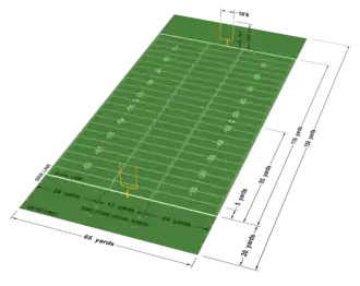 Игра ведётся на прямоугольном поле 120 ярдов (110 метров) длиной и 53 1/3 ярдов (49 м) шириной. У каждого конца поля, на расстоянии 100 ярдов друг от друга, проведены линии цели (goal lines). 10-ярдовая очковая зона (end zone) находится между линией цели и границей поля.