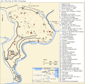 В период с 961 по 1045 год Ани был столицей Армянского царства Багратидов, границы которого охватывали значительную часть современных Армении и восточной Турции. Город стоит на треугольной возвышенности, образованной ущельем реки Ахурян и долиной Бостанлар, его местоположение служило естественной защитой. Ани называют городом 1001 церкви[10][11][12], через него пролегало несколько торговых путей, а его религиозные здания, дворцы и фортификационные сооружения были одними из самых технически и художественно совершенных в мире[13][14].