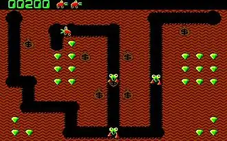 - Игровой счёт. Практически все классические аркады включают в себя игровой счёт, когда игрок получает очки за выполнение различных целей или задач. Например, в Centipede игроки получают 1 очко за уничтожение гриба, 10 за сегмент многоножки, 100 за её голову, и 1000 за скорпиона. Здесь имеется другой важный концепт аркад, унаследованный от игр пинбола: очки позволяют игроку понять, насколько хорошо он играл, несмотря на то, что выиграть невозможно. При этом типичное время игры среднего игрока составляет около двух минут, а у опытного до десятков минут[10]. На основании данной особенности у аркад как правило есть таблица рекордов, где игрок может рядом со своим результатом ввести свои инициалы, и тем самым сравнивать себя с другими игроками, и далее «хвастаться» и соревноваться[11].