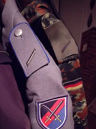 Синяя кайма вокруг погона указывает на то, что носитель приписан к подразделению тылового обеспечения немецкого бундесвера
