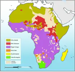 Автохтонные языки Африки разделяются на 32 семьи, из которых 3 (семитская, индоевропейская и австронезийская) «проникли» на континент из других регионов.