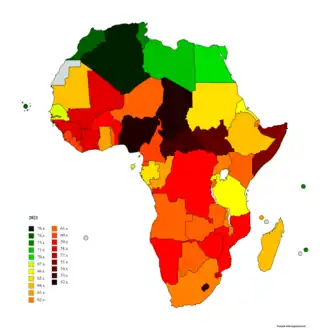 В 2019 году во всех странах Африки к югу от Сахары уровень рождаемости (среднее число детей) был выше уровня воспроизводства населения, и на них приходилось 27,1 % от общего числа живорождений в мире[42]. В 2021 году на Африку к югу от Сахары пришлось 29 % от общего числа рождений в мире[43].