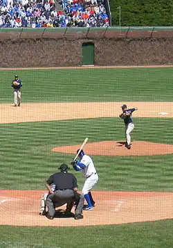 - Питчер (англ. Pitcher) — игрок защищающейся команды, подающий мяч.
