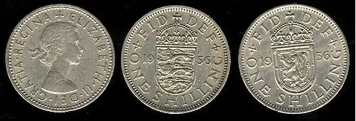 Во времена правления Георга VI и Елизаветы II выпускали два различных типа шиллинга, различавшиеся реверсами: в английском и шотландском варианте. В 1949 году с монеты исчезли слова IND. IMP. — после того как Индия провозгласила независимость.