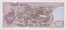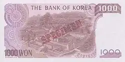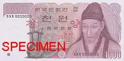 5. Brief History of current Korea notes in circulation; 1,000 won note (Flash и HTML). Банк Кореи. Дата обращения: 10 сентября 2008. Архивировано из оригинала 27 сентября 2007 года. (англ.)
