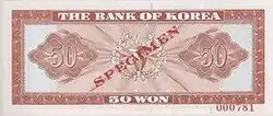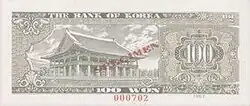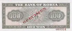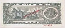 100 вон 158×78 коричневый Кванхвамун Номинал 22 июля 1950 17 февраля 1953