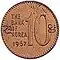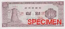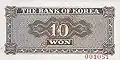 10 чонов 90×50 синий Надпись «Банк Кореи»
