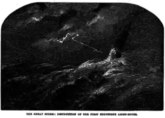 Ряд бурь охватил Англию с 19 ноября по Старому стилю[4]. Очень интенсивный градиент давления развивался на южном фланге шторма. Прямо на пути шторма, возникшего на западе Англии, оказался незадолго перед этим построенный Эддистонский маяк. Его создатель и строитель Генри Уинстэнли проживал там во время шторма. За несколько недель до Великого шторма он заявлял, что хотел бы увидеть, как его маяк выдержит шторм катастрофической силы. Маяк был уничтожен, с ним погибли шесть человек, включая самого архитектора. Скорость ураганного ветра в Великий шторм, как считают[1], превышала 120 миль в час. Рядом с Мурфилдс (англ. Moorfields) целый ряд зданий был сровнен с землёй, и много Лондонских церквей, включая Сент Мэри Олдерней и Сент Майкл, потеряли шпили и колокольни. На следующий день Дефо лично видел 700 «наиболее сокрушенных» судов между Шедуеллом и Лаймхаузом (англ. Shadwell и Limehouse). Прибрежные города вроде Портсмута наиболее сильно пострадали от действия шторма. Большие массы воды поднялись до устья Северна, так что огромное наводнение охватило большую часть Бристоля, причём уровень воды повысился почти на 3 метра выше уровня обычных приливов[1].