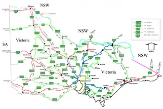 Викторианская дорожная сеть связывает между собой населенные пункты. Автострады лучами расходятся из Мельбурна, других крупнейших городов и региональных центров, а второстепенные дороги связывают автострады между собой. Большинство автострад построено по современным стандартам, остальные дороги, как правило, с твердым покрытием и приемлемого качества.