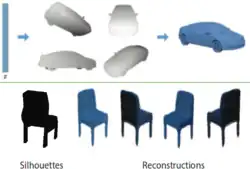 Люди способны очень хорошо догадываться о лежащей в основе категории 3D-формы / идентичности / геометрии, учитывая силуэт этой формы. Специалисты по компьютерному зрению смогли построить вычислительные модели для восприятия, которые проявляют сходное поведение и способны генерировать и восстанавливать разумные 3D-формы из одномерных или многомерных карт глубины или силуэтов[1]