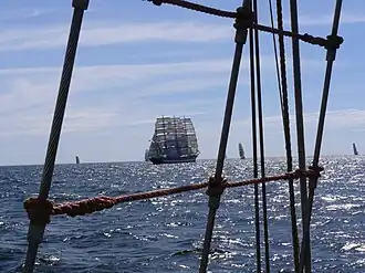 - 1 2 Марквардт К. Х., Рангоут, такелаж и паруса судов XVIII века: Пер. с нем. — Л.: Судостроение, 1991. с. 59, ил. Перевод изд.: Bemastung und Takelung von Schiffen des. 18 Jahrhunderts / K. H. Marquardt (Росток, 1986) ISBN 5-7355-0131-3