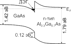 Зонная диаграмма гетероперехода GaAs/AlGaAs