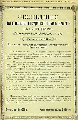 • Н. О. Экспедиция заготовления государственных бумаг // Энциклопедический словарь Брокгауза и Ефрона : в 86 т. (82 т. и 4 доп.). СПб., 1890—1907. (Дата обращения: 7 декабря 2010)