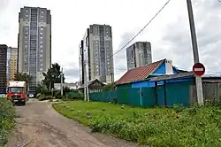 - Первые жилые дома на Горках, возведённые в 1970 году — пятиэтажные «хрущёвки» серии 1-467: ул. Хусаина Мавлютова, 30, 34 (ноябрь 2018)