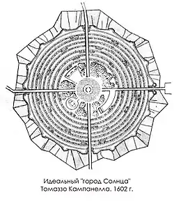 Социально-теологическая утопия, повлиявшая на дальнейшее развитие идеологии урбанизма, изложена в знаменитом сочинении Томмазо Кампанеллы «Город Солнца» (ок. 1602 г.).