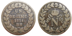 | Франция | 1/10 франка | 1795—1815 | 1, 2 десима |