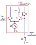 - , где — выходные сопротивления транзисторов, — их напряжения Эрли[73][74][75].