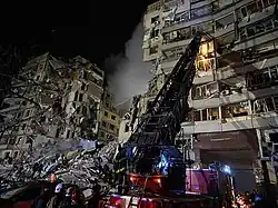 48. Обстрел Днепра. Разрушен целый подъезд жилого дома. Фотография. Дата обращения: 16 января 2023. Архивировано 15 января 2023 года.