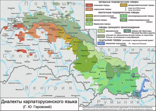 Говоры Закарпатья — согласно классификации Г. Ю. Геровского[15]