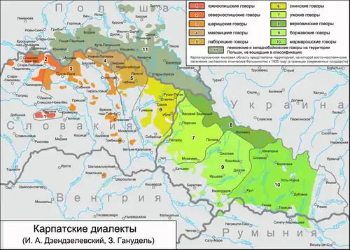 Говоры Закарпатья — согласно классификации И. А. Дзендзелевского[16]