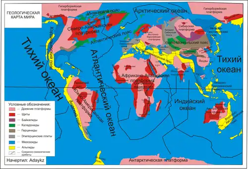 В протерозое происходил процесс образования древних платформ Евразии Сибирской, Китайской и Восточно-Европейской. В конце эры увеличилась суша к югу от Сибирской платформы[9]. В силуре произошёл эпизод обширного горообразования в результате соединения Европейской и Североамериканской платформ, образовавших крупный Североатлантический континент. На востоке Сибирская платформа и ряд горных систем объединились, образовав новый материк — Ангариду. В это время происходил процесс формирования рудных месторождений[9].