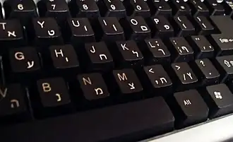 Эти макеты обычно известны как «еврейская клавиатура QWERTY»[1][2] или «французско-еврейский AZERTY»[3]. Хотя раскладки иврита для клавиатур на основе латинского алфавита не очень хорошо стандартизированы, OS X поставляется с вариантом Hebrew-QWERTY, а раскладки программного обеспечения для Microsoft Windows можно найти в Интернете[4]. Такие инструменты, как Microsoft Keyboard Layout Creator, также можно использовать для создания пользовательских макетов. Хотя производители редко начинают выпускать наклейки на иврите и QWERTY и печатные клавиатуры[5], они полезны для тех, кто не хочет запоминать позиции ивритских символов.