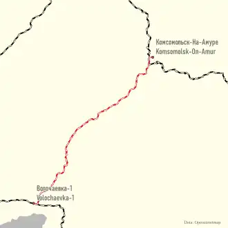 Железнодорожная линия Комсомольск-на-Амуре — Дежнёвка — участок Дальневосточной железной дороги длиной около 363 км[1]. Однопутная неэлектрифицированная железнодорожная ветка от узловой станции Волочаевка II вблизи Хабаровска и Транссибирской магистрали следует в северном направлении и проходит через Комсомольск-на-Амуре[2], пересекая Байкало-Амурскую магистраль, до станции Дзёмги в Ленинском округе Комсомольска-на-Амуре (северо-восточный район города).