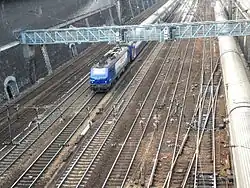 Поезд — в современном понятии сформированный и сцепленный состав, состоящий из группы вагонов, с одним или несколькими действующими локомотивами или моторными вагонами, приводящими его в движение, и имеющий установленные сигналы (звуковые и видимые), которые обозначают его голову и хвост. Помимо этого, на многих (в том числе и российских) железных дорогах каждый поезд получает определённый номер, позволяющий отличать его от остальных поездов. К поездам также относят локомотивы без вагонов, моторные вагоны и специальный самоходный подвижной состав (например, автомотрисы и дрезины несъёмного типа), отправляемые на перегон и имеющие установленные сигналы[31]. (Согласно ПТЭ. Поезд — сформированный и сцепленный состав вагонов с одним или несколькими действующими локомотивами или моторными вагонами, имеющий установленные сигналы, а также отправляемые на перегон и находящиеся на перегоне локомотивы без вагонов и специальный самоходный железнодорожный подвижной состав.)
