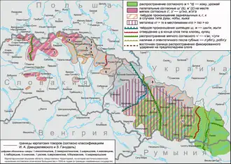 - ↑ Геровский, 1995, с. 35—38, карта-схема «Говоры Подкарпатской Руси».