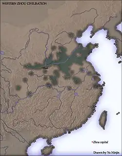 Период Чжоу (XI—III вв. до н. э.) делится на так называемые Западное и Восточное Чжоу, что связано с переездом правителя Чжоу в 770 году до н. э. под угрозой нашествия варварских племён из Цзунчжоу — первоначальной столицы государства — в Чэнчжоу. Земли в районе старой столицы были отданы одному из союзников правителя государства, который создал здесь новый удел Цинь. Впоследствии именно этот удел станет центром единой китайской империи.