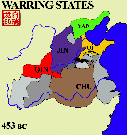В период Чжаньго на территории Китая сосуществовало семь крупнейших царств — Вэй, Чжао и Хань (ранее все три входили в царство Цзинь), Цинь, Ци, Янь и Чу. Постепенно в результате ожесточённого соперничества верх стало одерживать самое западное — Цинь. Присоединив одно за другим соседние царства, в 221 до н. э. правитель Цинь — будущий император Цинь Ши Хуан Ди — объединил весь Китай под своей властью.