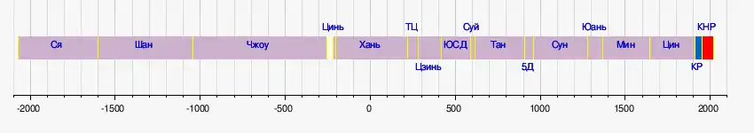 КНРКитайская Республика (1912—1949)Империя ЦинИмперия МинЮань (империя)Империя СунЭпоха пяти династий и десяти царствИмперия ТанСуйЮжные и Северные ДинастииЦзинь (265—420)ТроецарствиеИмперия ХаньЦинь (империя)Чжоу (эпоха)Шан (династия)Ся (династия)