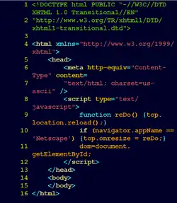 Исходный код языка разметки HTML страницы со вставкой на языке программирования JavaScript