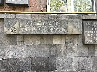Мемориальная доска на д. 32 по улице Абовяна в Ереване.