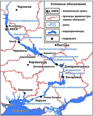 - ↑ Каскад водохранилищ на Днепре. www.fishfighter.ru. Дата обращения: 16 апреля 2019. Архивировано из оригинала 21 июня 2009 года.