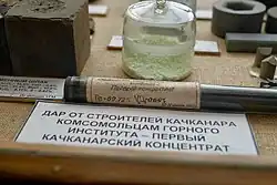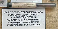 Проба первого качканарского концентрата в Уральском геологическом музее