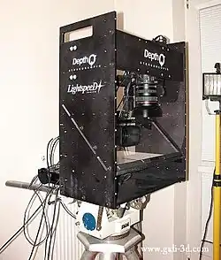 Для съёмки кинофильмов 3D используются как сдвоенные[91] стандартные киносъёмочные аппараты, так и специально спроектированные[92] камеры, оснащённые двумя объективами, разнесёнными на расстояние стереобазиса. Советский стандарт «Стерео-70» предусматривал съёмку стереопары одним киносъёмочным аппаратом на одну киноплёнку шириной 70 мм. При этом как на негативе, так и на фильмокопии оба кадра каждой стереопары располагались на одной киноплёнке попарно горизонтально. Для съёмки 3D фильмов по стандарту IMAX также используется специально спроектированный аппарат с двумя лентопротяжными трактами и двумя объективами. Вес такого киносъёмочного аппарата превышает 100 кг, что делает съёмку некоторых сюжетов затруднительной[91].