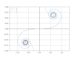 - где Fr(x) — интегральная функция Френеля, образующая на комплексной плоскости спираль Корню.